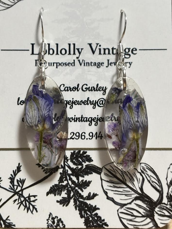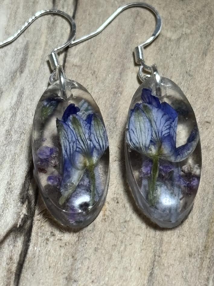 Real iris petals and delicate Queen Anne’s lace are carefully preserved in clear resin, creating a soft, ethereal window into the garden. Each bloom is pressed at its peak and sealed to retain its natural veining, color, and quiet movement.